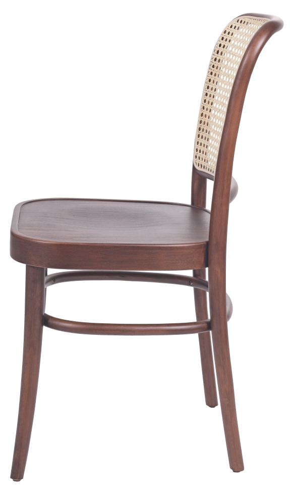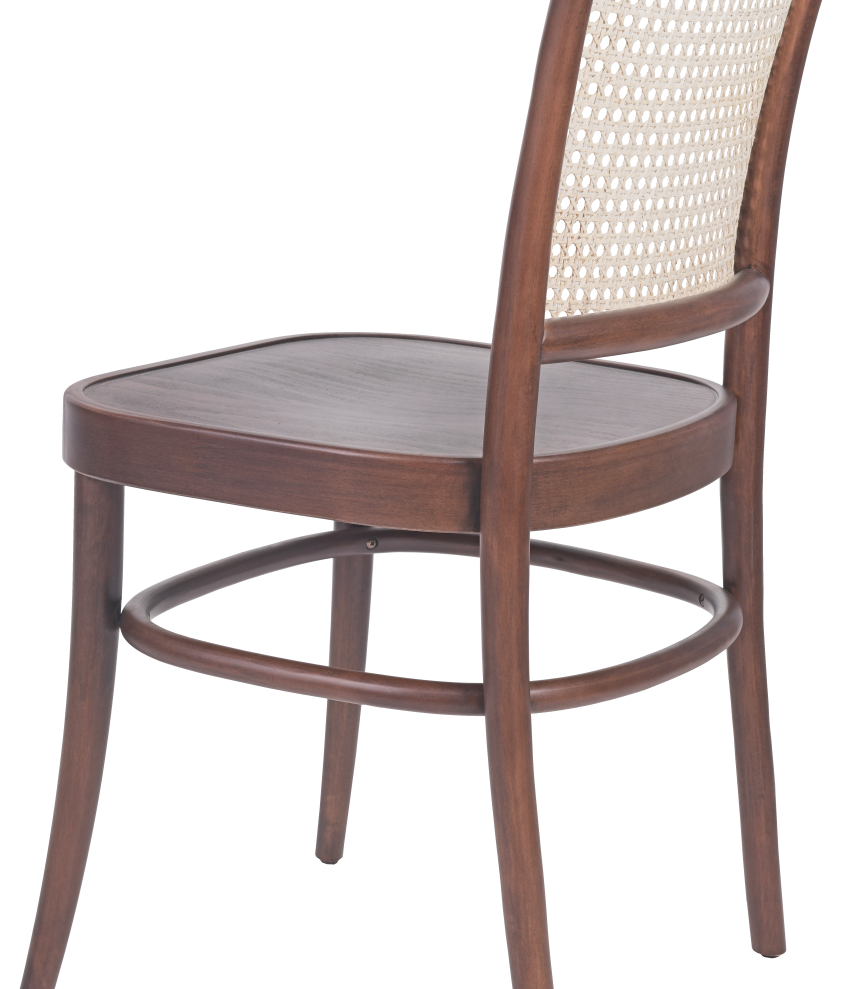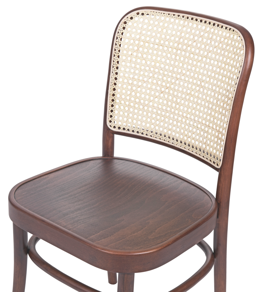 A Loomi 811 rattan szék – dió színben a klasszikus európai formatervezés és a modern vendéglátóipari igények harmonikus találkozása. A modell a híres 811-es szék kortárs változata, amelyet eredetileg Josef Hoffmann tervezett a 20. század elején. Időtlen megjelenésének köszönhetően ideális választás kávézókba, éttermekbe, szállodai terekbe vagy stílusos otthoni étkezőkbe.