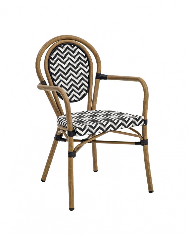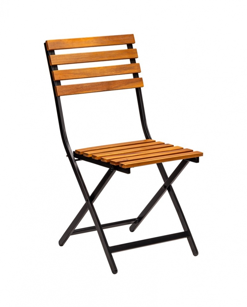 A váz 6 mm vastag, magasfényű fekete porszórt acél, amely biztosítja a kiemelkedő stabilitást és ellenállást az intenzív használattal szemben. Az ülés és a háttámla 19 mm vastag, 55 mm széles akácfa lécekből készült, így a szék kényelmes és időtálló megjelenésű.