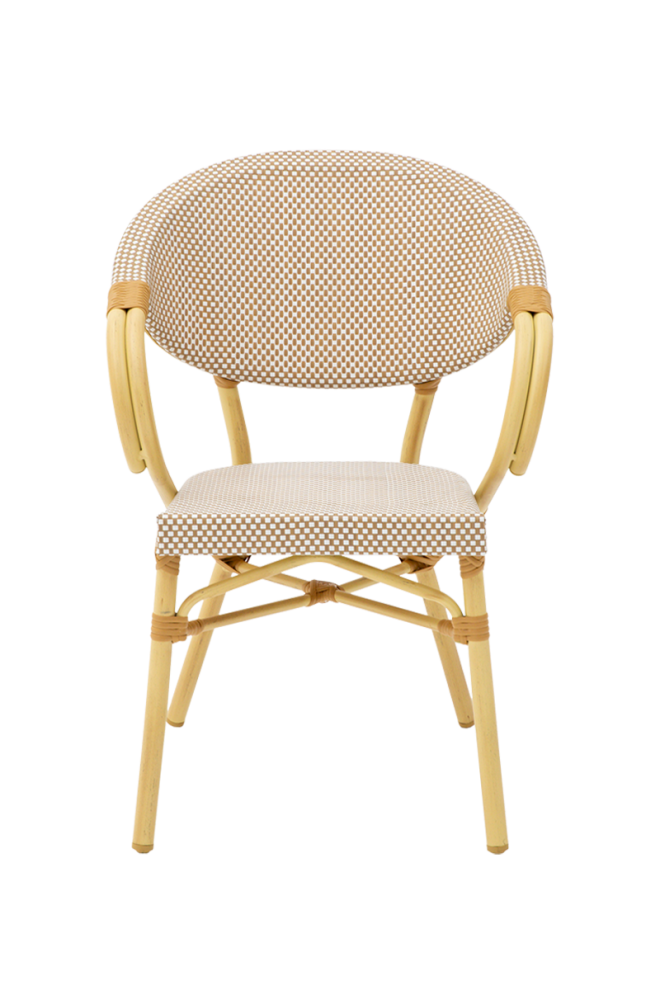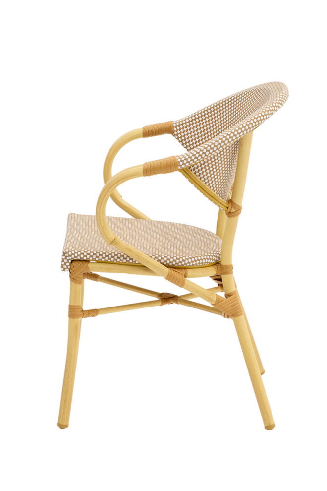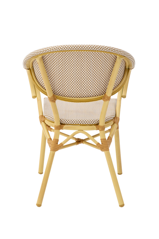 Modern megjelenésű technorattan kültéri szék. Technorattan székeink kézzel készültek. Ez a folyamat a legjobb minőségű technorattan kiválasztásával kezdődik – egy rugalmas, de tartós anyag, amely tökéletesen utánozza a természetes rattant, de sokkal jobban ellenáll a változó időjárási viszonyoknak. Ezután kezdik meg kézzel a szék minden elemének a szövését. Aluminium vázának köszönhetően nem kell tartani attól, hogy az időjárás viszontagságai miatt rozsdásodni kezt. Rakásolható kialakítású (4 db-ig).