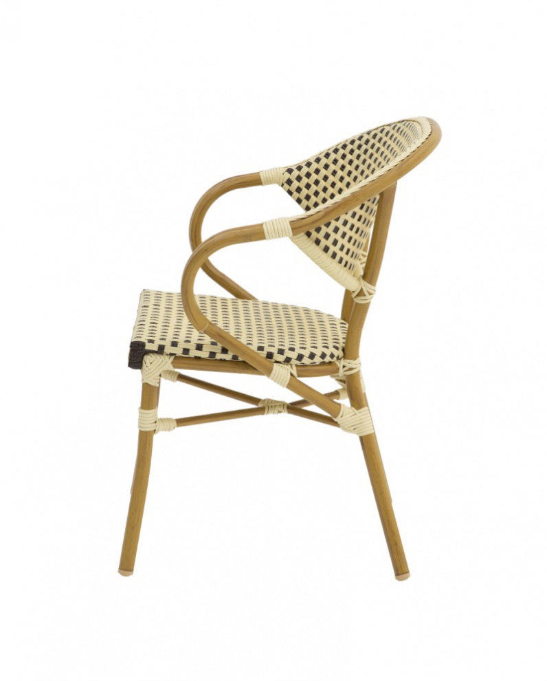 Modern megjelenésű technorattan kültéri szék. Technorattan székeink kézzel készültek. Ez a folyamat a legjobb minőségű technorattan kiválasztásával kezdődik – egy rugalmas, de tartós anyag, amely tökéletesen utánozza a természetes rattant, de sokkal jobban ellenáll a változó időjárási viszonyoknak. Ezután kezdik meg kézzel a szék minden elemének a szövését. Aluminium vázának köszönhetően nem kell tartani attól, hogy az időjárás viszontagságai miatt rozsdásodni kezt. Rakásolható kialakítású (4 db-ig).