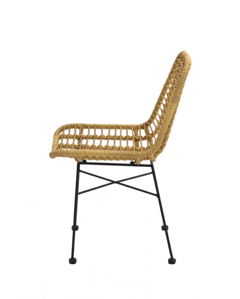 Az ülőfelület és a háttámla légies technorattan szövése kiváló légáramlást biztosít, így a szék különösen komfortos a forró nyári napokon is. A természetes hatású fonat meleg, barátságos atmoszférát teremt, amely harmonikusan illeszkedik kültéri és beltéri környezetbe egyaránt.