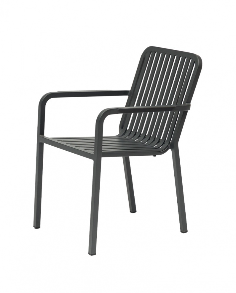 A Purezza kültéri szék antracit színben elegáns, modern és időtálló választás teraszokra, éttermekbe és kávézókba. Az antracit árnyalat letisztult, professzionális megjelenést biztosít, amely könnyedén illeszkedik modern, ipari vagy minimalista környezetbe.