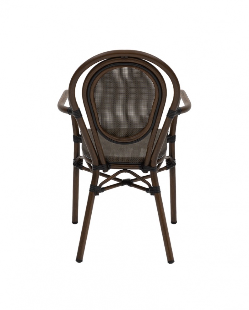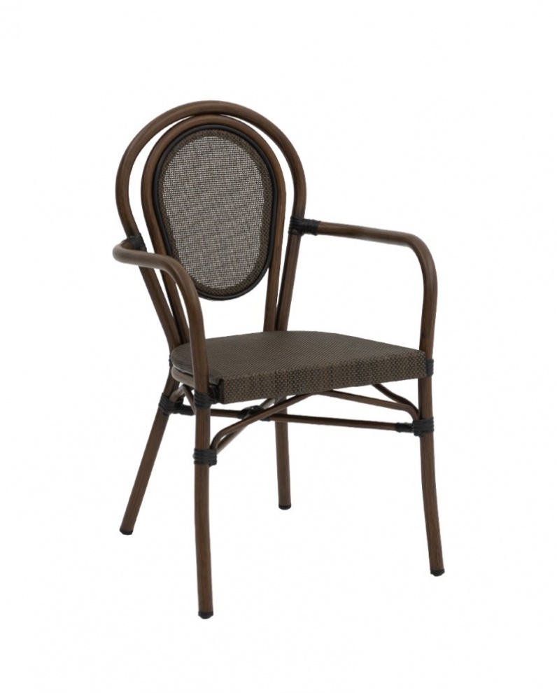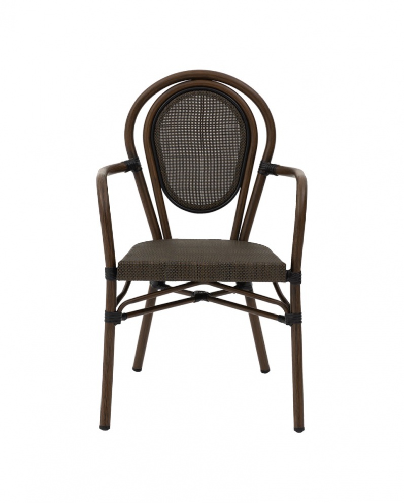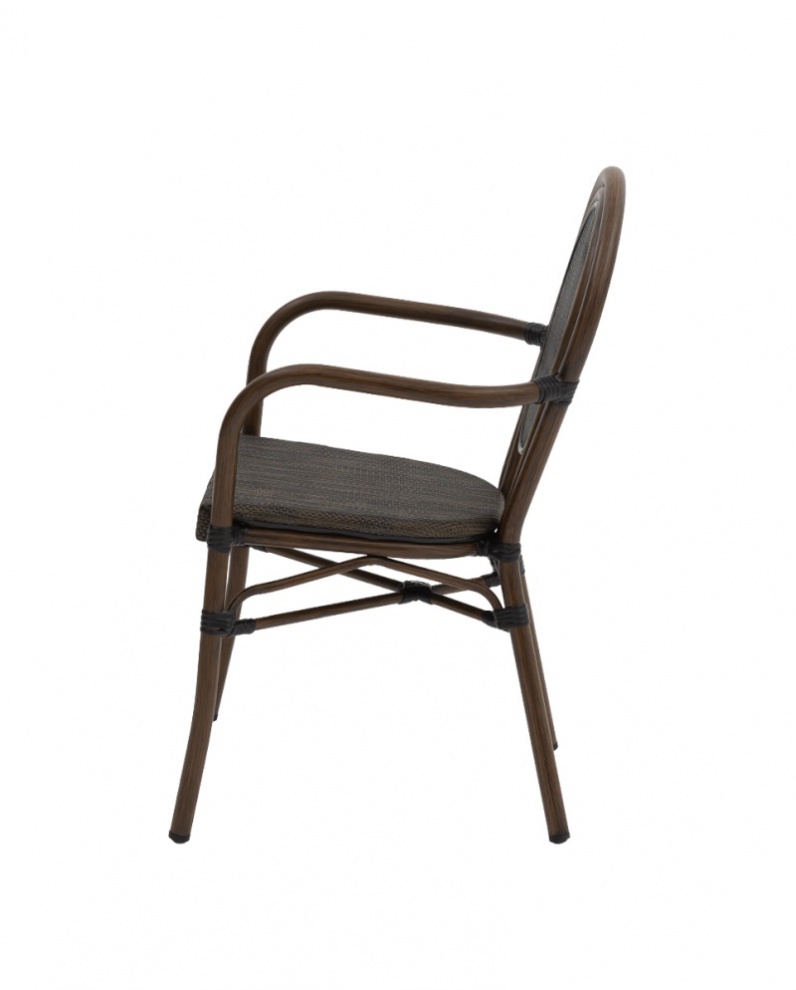 A Riccardo Arm technorattan szék barna színben klasszikus és elegáns megjelenést biztosít éttermek, kávézók és szállodák teraszai számára. A meleg barna árnyalat természetes hatást kelt, így harmonikusan illeszkedik modern és hagyományos környezetbe egyaránt.
