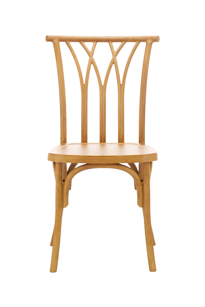 A szék kiváló minőségű Polywood polipropilénből készül, amely élethű fa textúrával és természetes megjelenéssel rendelkezik. A natúr szín világos, semleges árnyalatával meleg, természetes hangulatot teremt, így tökéletesen illeszkedik rusztikus, klasszikus vagy modern esküvői dekorációkhoz.