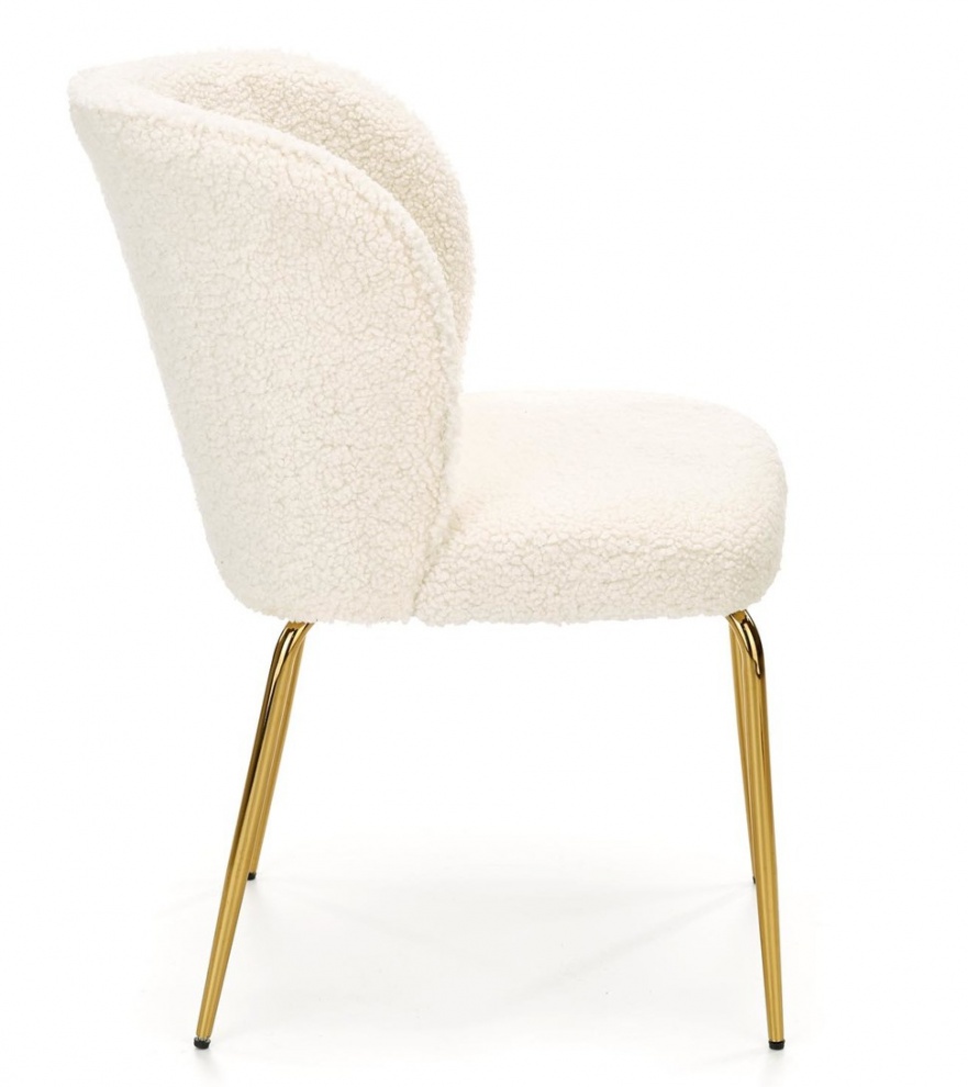 Retro megjelenésű szék modern köntösbe bújtatva. Lábai krómozott acélból készültek, színűk arany. Krém színű kárpitja puha tapintású. Lábai alján tappancsok találhatóak, amik megvédik a padlót a sérülésektől.