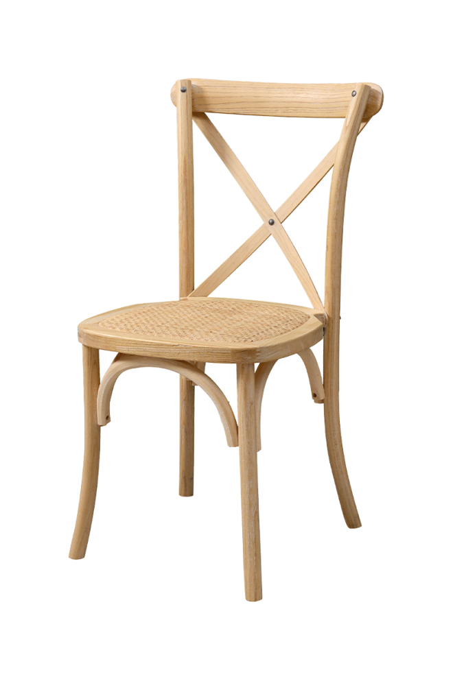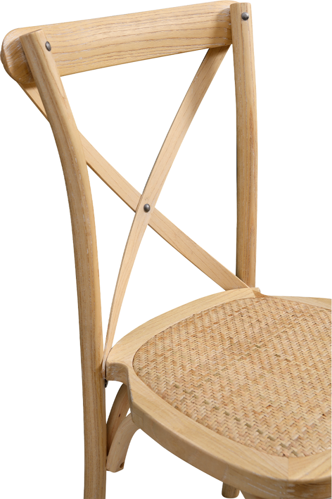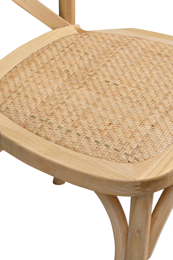 Cross back favázas rattan esküvői szék - Fehérre Meszelt