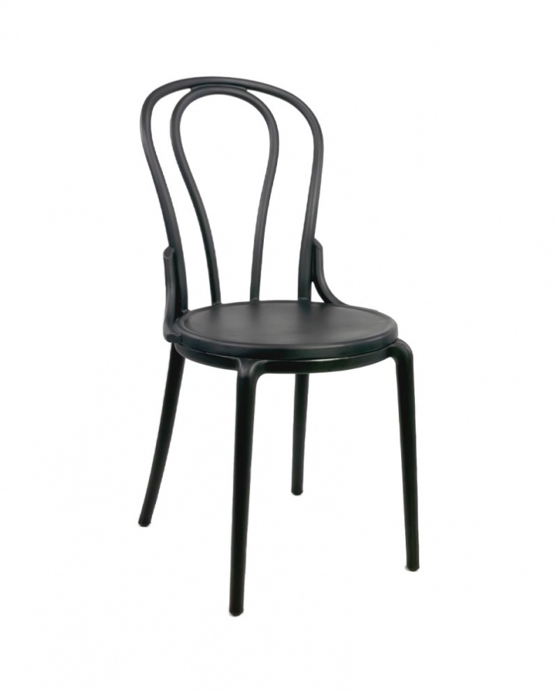 A Monet Polywood szék – fekete elegáns és tartós választás esküvői termekbe, rendezvényekre és kertekbe. Klasszikus sziluettjét az ikonikus párizsi bisztró stílus inspirálta, finoman ívelt háttámlával, amely könnyedséget és kifinomultságot kölcsönöz a széknek. Időtlen formája tökéletesen illik mind a hagyományos, mind a modern környezetbe.