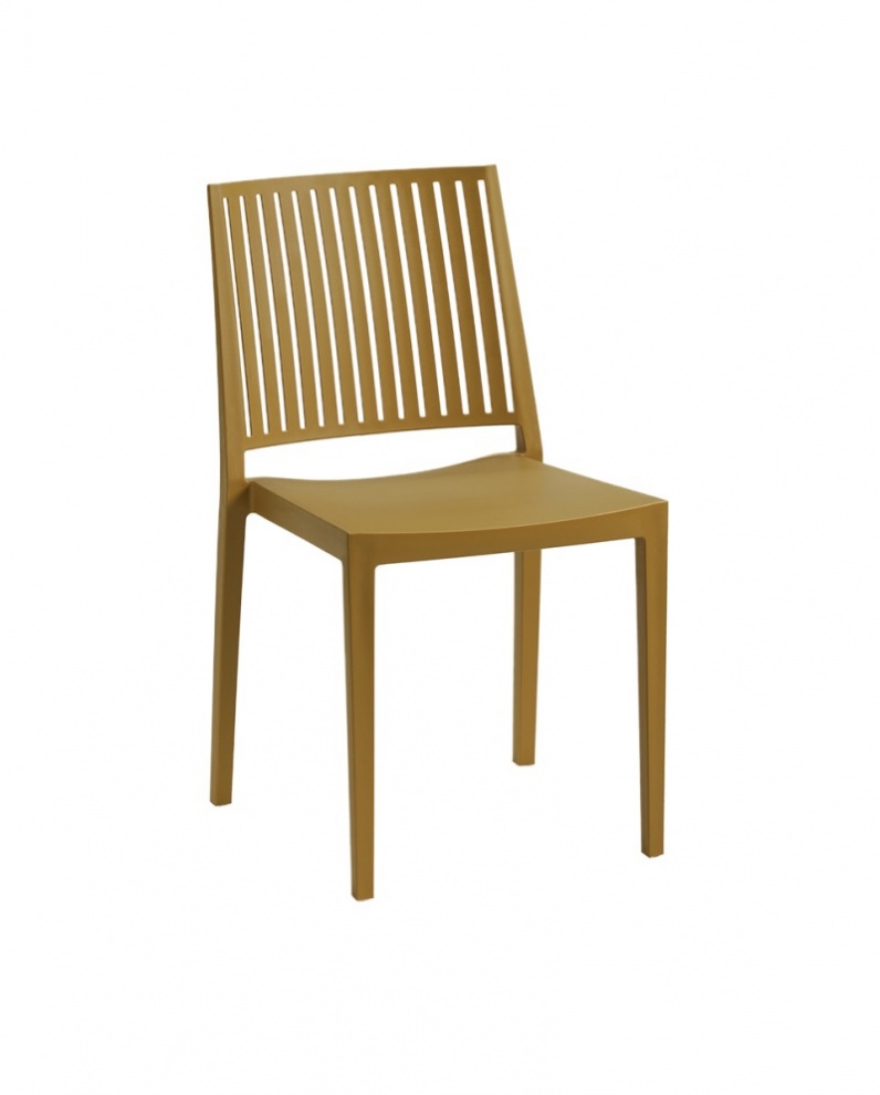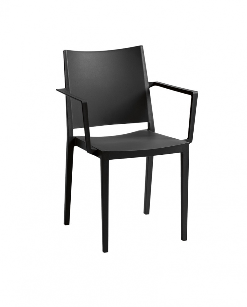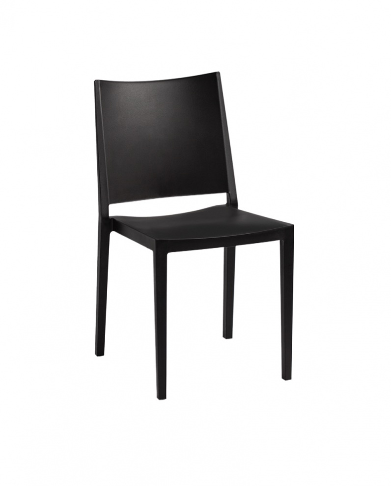A szék Polywood polipropilénből készült, amely tartós, karcálló, időjárásálló és könnyen tisztítható. A fekete szín klasszikus és elegáns hatást ad, miközben a finom fahatású textúra a természetes fa jellegzetességeit idézi, így a szék vizuálisan megragadja a fa báját. A kontúrozott ülés és lekerekített háttámla ergonomikus komfortot biztosít hosszabb események alatt is.