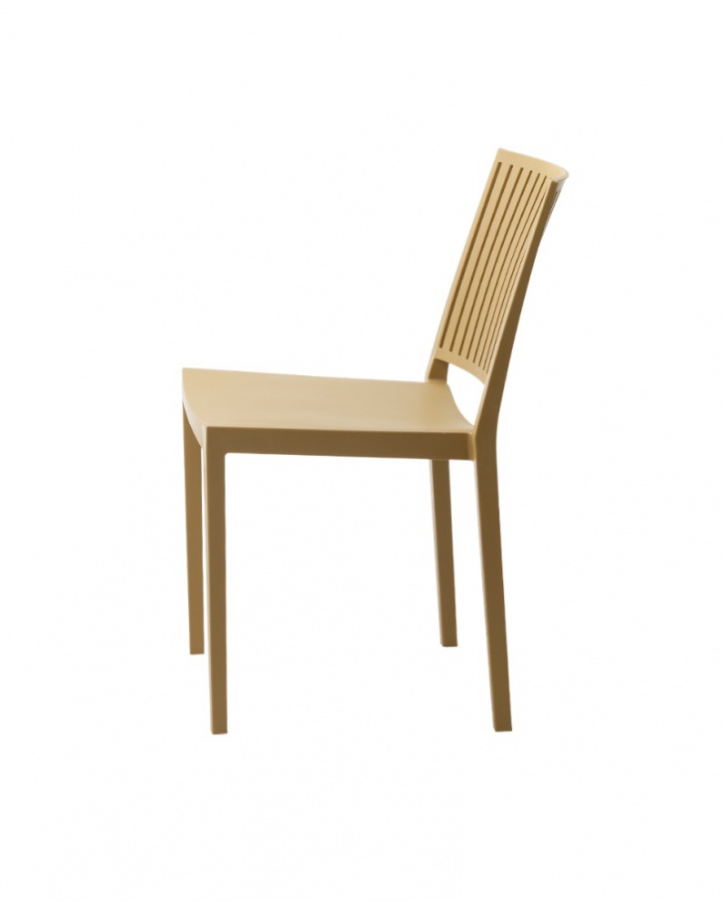 A Gomera Stripes kültéri szék – karamell modern és praktikus választás kávézók, bárok, pubok és várótermek számára. A csíkos háttámla eleganciát kölcsönöz, miközben a függőleges rések hosszabb használat során is kellemes szellőzést biztosít.
